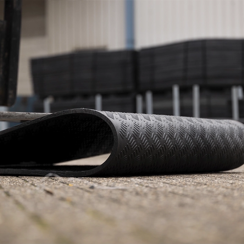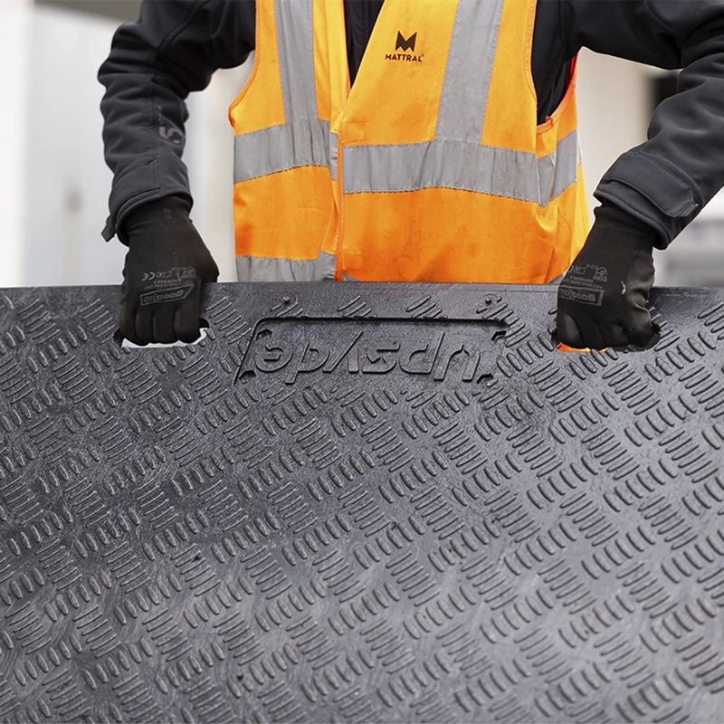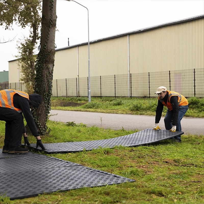 Upsyde-Fahrplatten aus recyceltem Kunststoff bieten effizienten Bodenschutz und Zugang, indem sie temporäre Wege für Fußgänger, Fahrzeuge oder Maschinen schaffen. Sie sind leichter als Stahl und ermöglichen eine schnelle, einfache und sichere Installation durch ein Zweierteam.